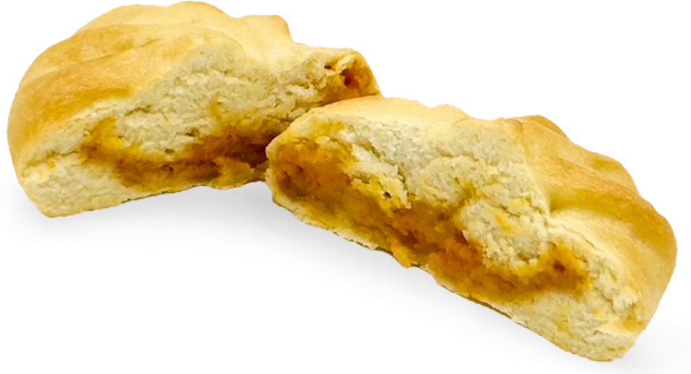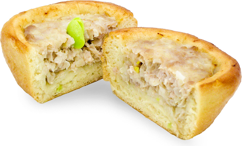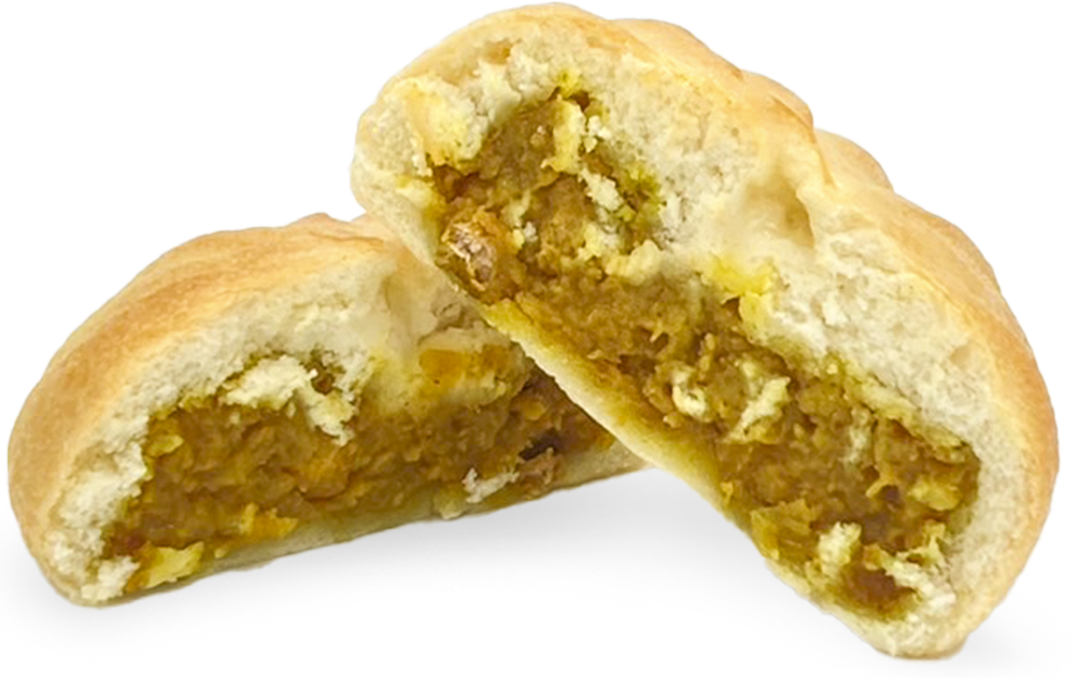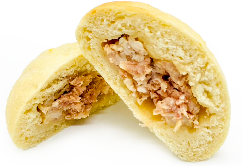 肉まん生地をオーブンでこんがりと焼き上げ、パンのようなもちっとした食感に仕上げました。